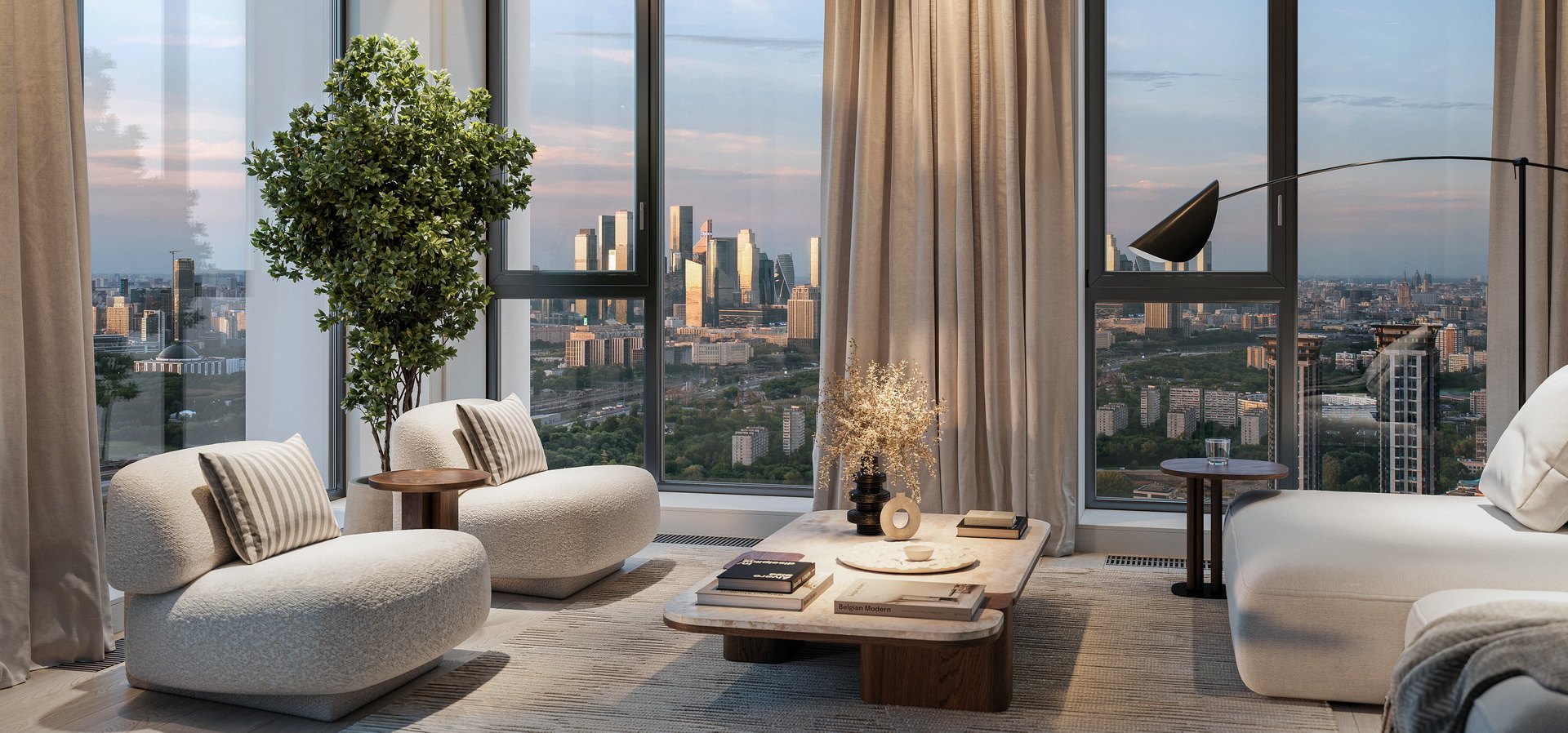 Роскошные пентхаусы и квартиры с террасами на верхних этажах открываются панорамные виды на знаковые достопримечательности столицы.